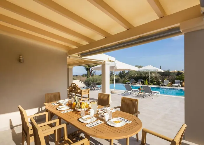 هذه الفيلا مزودة بـمنطقة المطبخ الصغير المجهز. اقرب مطار هو كورفو الدولي على بعد 10 كم من الإقامة. يمكنك الاسترخاء بـالمسبح واستعمال الشرفة وبركة السباحة والحديقة في الموقع.
